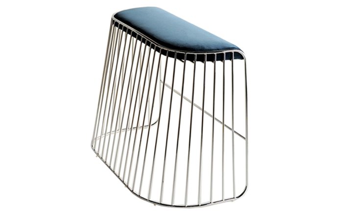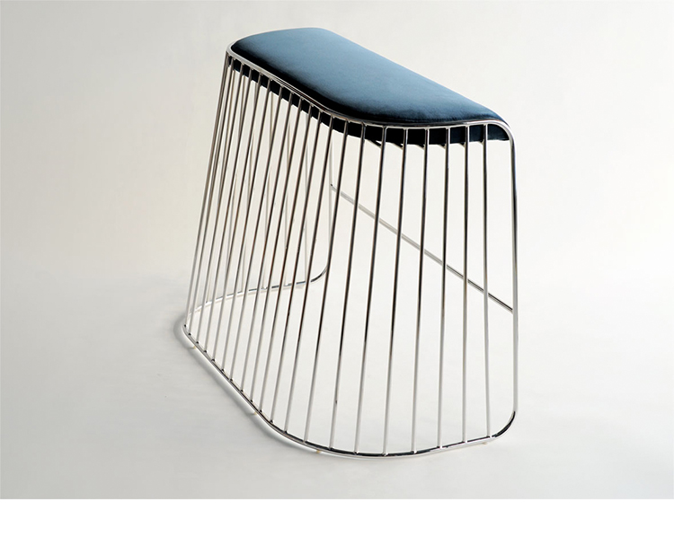 "The Bride's Veil Stool family’s unique language is meant as a graceful alternative to the archetypal bar stool.The double stool is the perfect solution for you and your date to enjoy sitting together uninhibited by separate stools.The strikingly elegant metal base is available in smoked brass,polished chrome, burnt copper,or powder coat,while the top is offered in COM upholstery.At every angle these stools offer a visual treat."