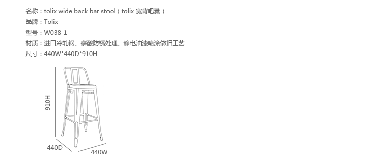 tolix chair(tolix椅)一把有味道、有态度的椅子,据说它最开始被使用在一艘战舰的天气预报房间里,故事的真实性与否不得而知,但是不影响其成为享誉世界的著名设计火狐官方网站,1934年由Xavier Pauchard设计,早期是作为户外用火狐官方网站设计,力图展现法式慵懒而闲适的气质,经年而来被全世界时尚火狐HUOHU(中国)所宠爱,从室外扩展到家居、商业、展示等多个用途,而此椅也不负众望在各类空间中均有上佳表现,特别是近年来与混搭、乡村、美式、怀旧、北欧简约、中式等主要装修风格搭配,都呈现出独特的韵味,也被时尚界赞为“百搭第一”椅,可以用在酒吧,餐馆,咖啡馆等等地方,之后通过改进,设计出有扶手版本的tolix armchair(tolix扶手椅),高背版本的tolix high back bar stool(tolix高背吧凳),宽背版本的tolix wide back bar stool(tolix宽背吧凳),及tolix bar stool(tolix吧凳)和tolix mini stool(tolix迷你凳)。制作采用进口冷轧钢、磷酸防锈处理、静电油漆喷涂工艺、坐面为木板或PU海绵坐垫,颜色可选。