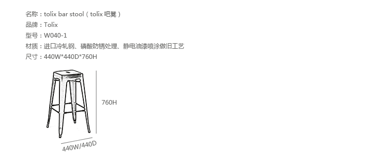 tolix chair(tolix椅)一把有味道、有态度的椅子,据说它最开始被使用在一艘战舰的天气预报房间里,故事的真实性与否不得而知,但是不影响其成为享誉世界的著名设计火狐官方网站,1934年由Xavier Pauchard设计,早期是作为户外用火狐官方网站设计,力图展现法式慵懒而闲适的气质,经年而来被全世界时尚火狐HUOHU(中国)所宠爱,从室外扩展到家居、商业、展示等多个用途,而此椅也不负众望在各类空间中均有上佳表现,特别是近年来与混搭、乡村、美式、怀旧、北欧简约、中式等主要装修风格搭配,都呈现出独特的韵味,也被时尚界赞为“百搭第一”椅,可以用在酒吧,餐馆,咖啡馆等等地方,之后通过改进,设计出有扶手版本的tolix armchair(tolix扶手椅),高背版本的tolix high back bar stool(tolix高背吧凳),宽背版本的tolix wide back bar stool(tolix宽背吧凳),及tolix bar stool(tolix吧凳)和tolix mini stool(tolix迷你凳)。制作采用进口冷轧钢、磷酸防锈处理、静电油漆喷涂工艺、坐面为木板或PU海绵坐垫,颜色可选。