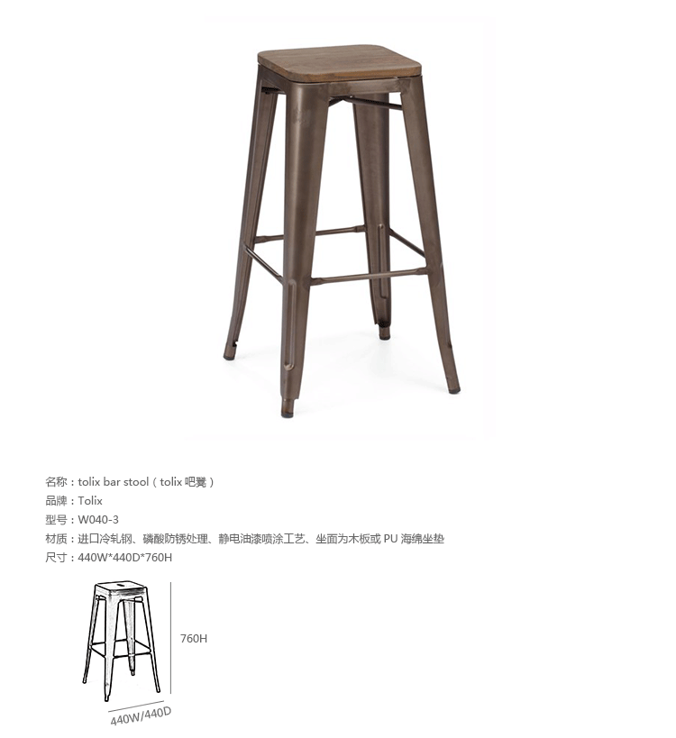 tolix chair(tolix椅)一把有味道、有态度的椅子,据说它最开始被使用在一艘战舰的天气预报房间里,故事的真实性与否不得而知,但是不影响其成为享誉世界的著名设计火狐官方网站,1934年由Xavier Pauchard设计,早期是作为户外用火狐官方网站设计,力图展现法式慵懒而闲适的气质,经年而来被全世界时尚火狐HUOHU(中国)所宠爱,从室外扩展到家居、商业、展示等多个用途,而此椅也不负众望在各类空间中均有上佳表现,特别是近年来与混搭、乡村、美式、怀旧、北欧简约、中式等主要装修风格搭配,都呈现出独特的韵味,也被时尚界赞为“百搭第一”椅,可以用在酒吧,餐馆,咖啡馆等等地方,之后通过改进,设计出有扶手版本的tolix armchair(tolix扶手椅),高背版本的tolix high back bar stool(tolix高背吧凳),宽背版本的tolix wide back bar stool(tolix宽背吧凳),及tolix bar stool(tolix吧凳)和tolix mini stool(tolix迷你凳)。制作采用进口冷轧钢、磷酸防锈处理、静电油漆喷涂工艺、坐面为木板或PU海绵坐垫,颜色可选。