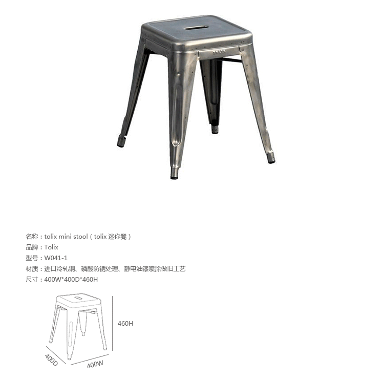 tolix chair(tolix椅)一把有味道、有态度的椅子,据说它最开始被使用在一艘战舰的天气预报房间里,故事的真实性与否不得而知,但是不影响其成为享誉世界的著名设计火狐官方网站,1934年由Xavier Pauchard设计,早期是作为户外用火狐官方网站设计,力图展现法式慵懒而闲适的气质,经年而来被全世界时尚火狐HUOHU(中国)所宠爱,从室外扩展到家居、商业、展示等多个用途,而此椅也不负众望在各类空间中均有上佳表现,特别是近年来与混搭、乡村、美式、怀旧、北欧简约、中式等主要装修风格搭配,都呈现出独特的韵味,也被时尚界赞为“百搭第一”椅,可以用在酒吧,餐馆,咖啡馆等等地方,之后通过改进,设计出有扶手版本的tolix armchair(tolix扶手椅),高背版本的tolix high back bar stool(tolix高背吧凳),宽背版本的tolix wide back bar stool(tolix宽背吧凳),及tolix bar stool(tolix吧凳)和tolix mini stool(tolix迷你凳)。制作采用进口冷轧钢、磷酸防锈处理、静电油漆喷涂工艺、坐面为木板或PU海绵坐垫,颜色可选。