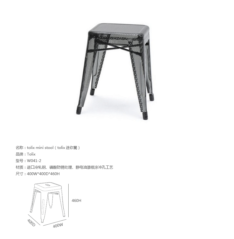 tolix chair(tolix椅)一把有味道、有态度的椅子,据说它最开始被使用在一艘战舰的天气预报房间里,故事的真实性与否不得而知,但是不影响其成为享誉世界的著名设计火狐官方网站,1934年由Xavier Pauchard设计,早期是作为户外用火狐官方网站设计,力图展现法式慵懒而闲适的气质,经年而来被全世界时尚火狐HUOHU(中国)所宠爱,从室外扩展到家居、商业、展示等多个用途,而此椅也不负众望在各类空间中均有上佳表现,特别是近年来与混搭、乡村、美式、怀旧、北欧简约、中式等主要装修风格搭配,都呈现出独特的韵味,也被时尚界赞为“百搭第一”椅,可以用在酒吧,餐馆,咖啡馆等等地方,之后通过改进,设计出有扶手版本的tolix armchair(tolix扶手椅),高背版本的tolix high back bar stool(tolix高背吧凳),宽背版本的tolix wide back bar stool(tolix宽背吧凳),及tolix bar stool(tolix吧凳)和tolix mini stool(tolix迷你凳)。制作采用进口冷轧钢、磷酸防锈处理、静电油漆喷涂工艺、坐面为木板或PU海绵坐垫,颜色可选。