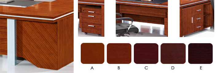 1. 面 料:采用胡桃木、樱桃木、柚木、榉木、桃花芯木等高级进口木皮(厚度为:0.6mm 以上);2. 基 材:选用进口中、高密度微粒板、纤维板,抗弯力强,不易变形;
