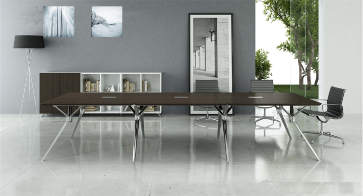 ※ 上图为会议台细节展示,采用贴皮工艺,是一款时尚与优雅相结合的现代产品,高亮光铝合金,凸出了产品与众不同,同时也提供了多种皮面颜色选择,造就了不同品味的需求。