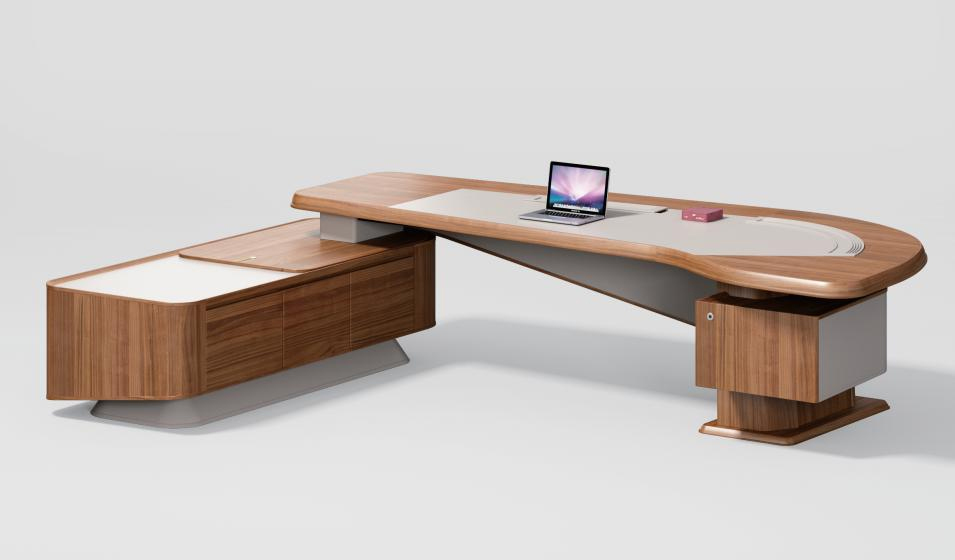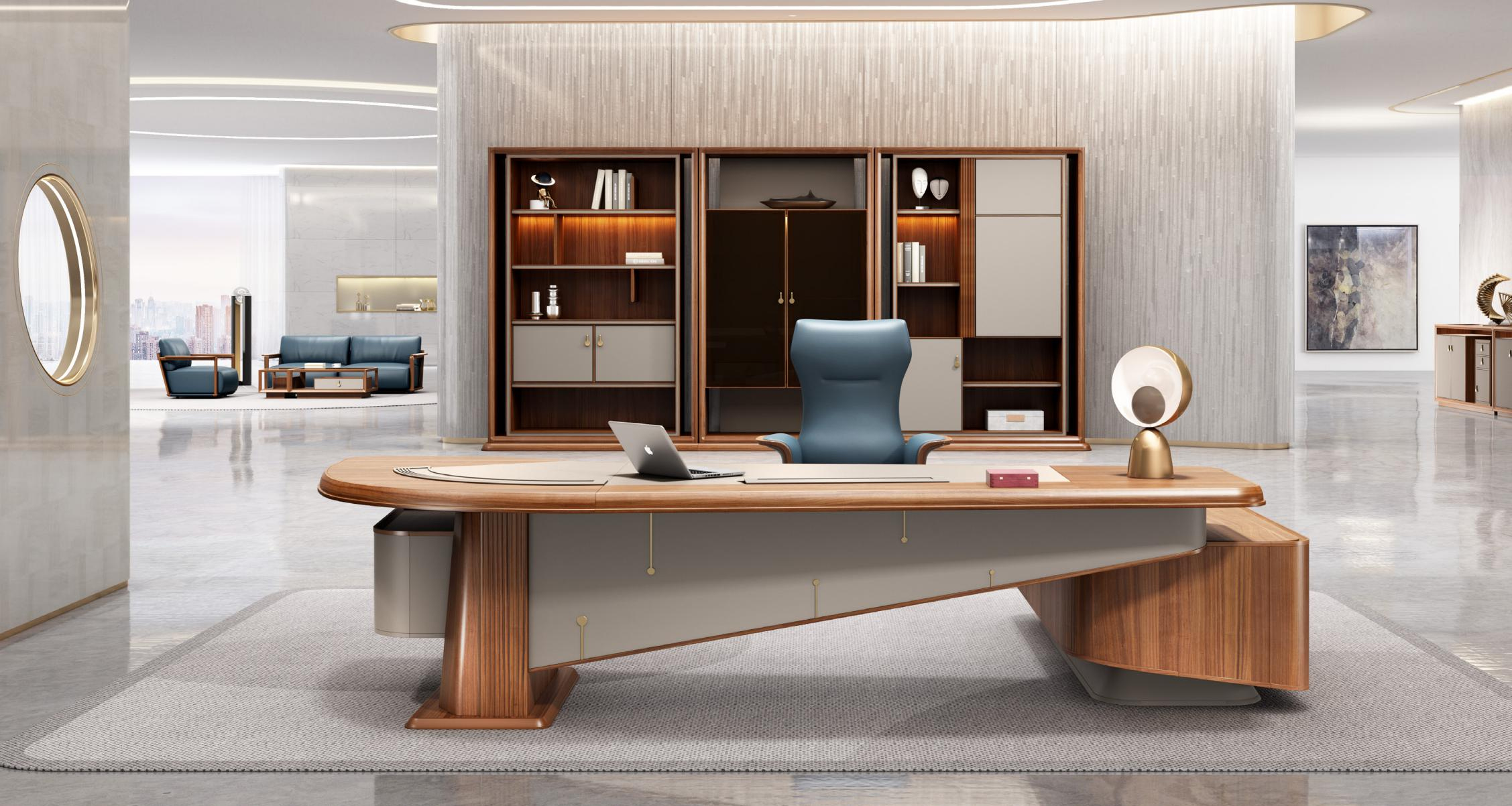 板木意式轻奢总裁系列办公火狐官方网站整体完美体现了意大利轻奢美学从罗马柱中汲取灵感,流畅的曲线将金属的精致,木皮的典雅和皮革的细腻的自然融合,将各自的美妙发挥到极致,追求视觉上的极致舒适,触觉上的极度愉悦。错落有致,构造感。
