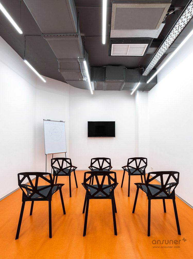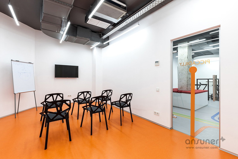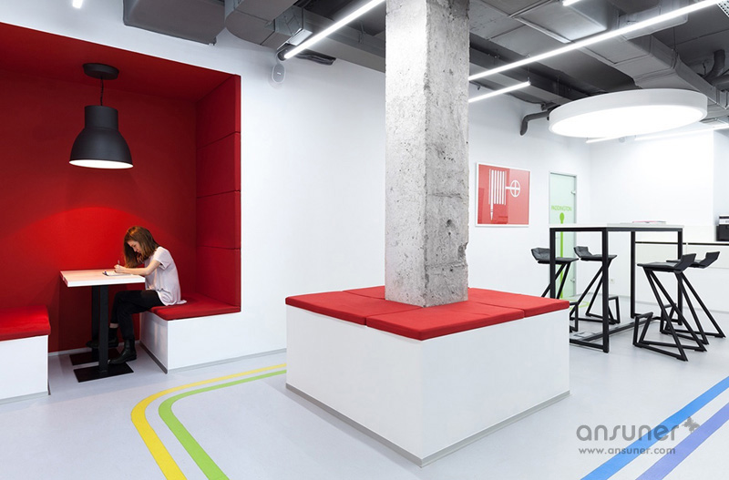 Underhub是乌克兰基辅本地的一家现代语言学校,同时这里还兼做联合办公空间,设有共享工作区、会议室和休息区。本案的设计灵感来自伦敦的地铁环境设计,将靓丽的导向色彩引入到室内设计中。如此充满创意的设计构想来自于基辅本地的一位才华横溢的建筑火狐HUOHU(中国) Emil Dervish。