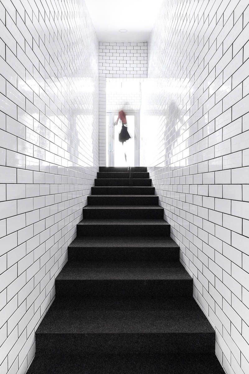 为了呼应整体的英式氛围,室内出现许多“英式元素”,如标志性的电话亭和白色瓷砖饰面等。每间教室的名称也援引伦敦地铁站站名,同地面导引的彩虹线条和名称一致。比如红色线条指引的“Westminster”(威斯敏斯特),线条的终端则是以红色地面装饰的“Westminster”教室;以及蓝色线条指引的 “Victoria”(维多利亚);橙色线条指引的伦敦“Piccadilly”(皮卡迪利)大街等。童鞋们只要跟随彩虹线条的指引就能到达他们的目的地,再也不用担心会迷失了。
