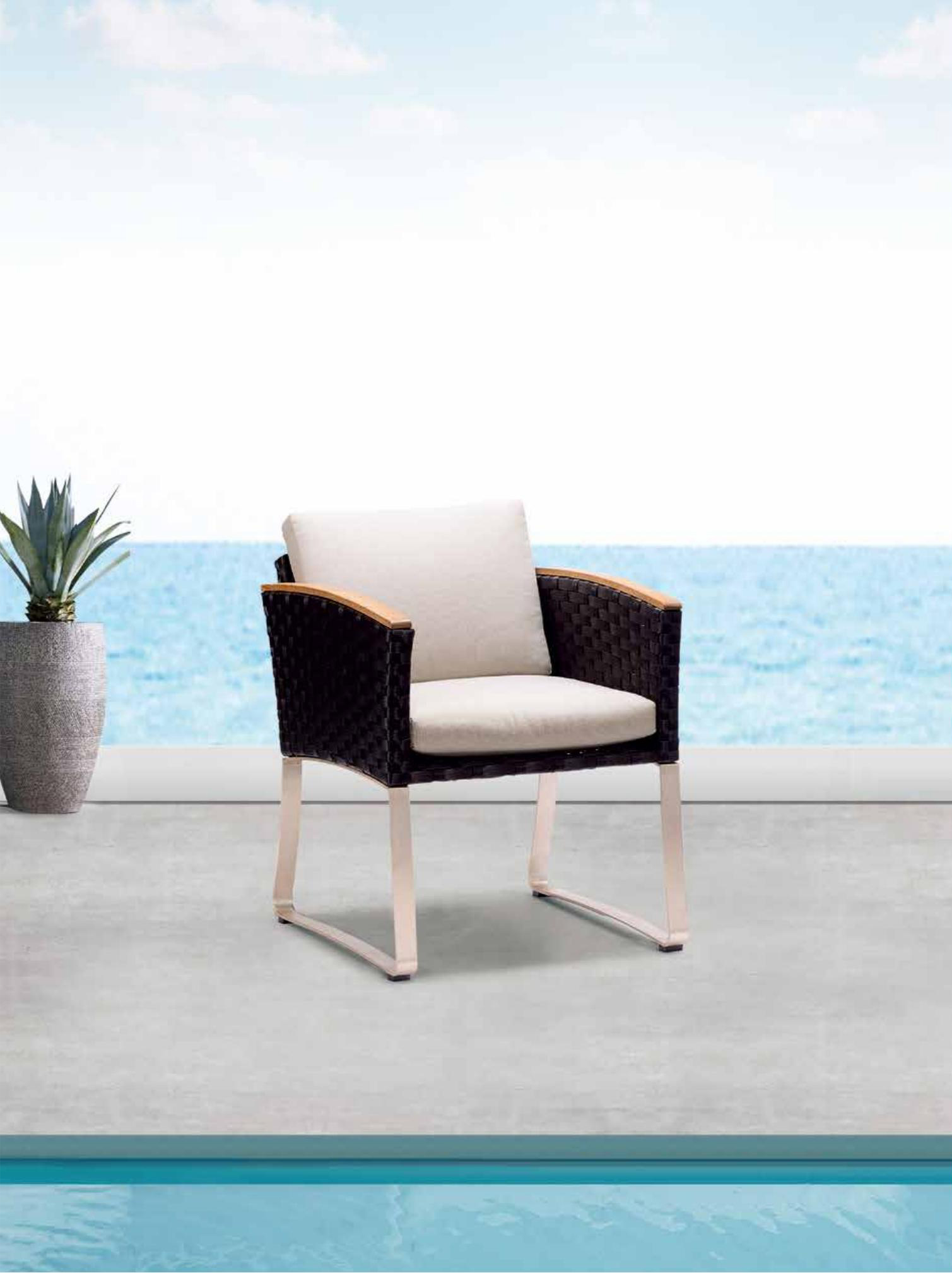 别样的黑色藤编同香槟铝框的巧妙结合,让博维给人一种纯粹复古的感觉。带有柔美弧度的靠背配上绵意浓浓的背垫,让博维餐椅或沙发坐感格外舒适。 完美的柚木扶手内嵌处理,展现了工艺的精湛,顿显博维的质感。对于博维餐桌,我们增创了一个小抽屉的温馨设计,给您的小物件预留属于它的小空间,简单便捷。