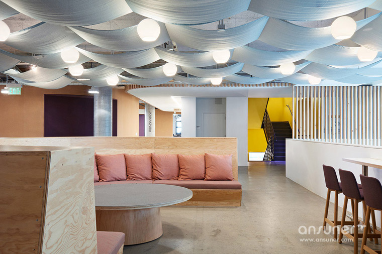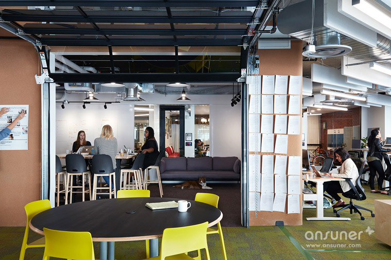共享经济为生活带来更多选择,比如国际民宿网站 Airbnb,提供平台让任何人都能出租多余空间,使外出旅行者不再只能住民宿或饭店,更能住进当地人家拥有独一无二的住宿体验。随着旅行风气兴起 带动 Airbnb 蓬勃发展,让他得以在东京、新加坡、都柏林与伦敦等全球各地插旗、拓展营运版图。日前Airbnb 旧金山总部的环境团队( Environments team )与当地建筑团队 WRNS Studio 合作将位于Brannan street 999 号上外形如仓库的大楼重新设计,为员工提供舒适又充满异国风情的办公环境。