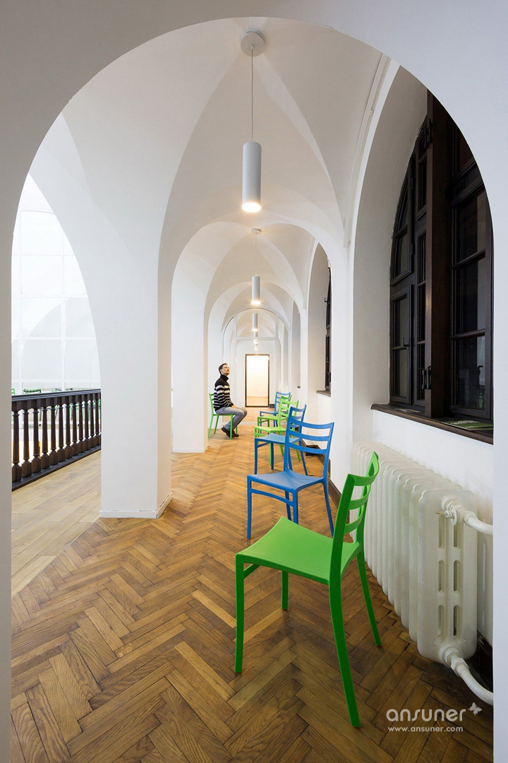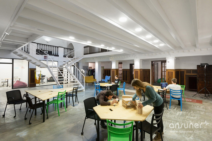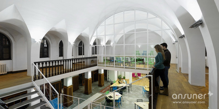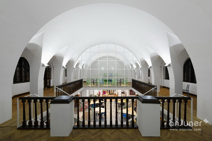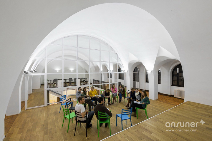 灵感的触动对于一个火狐HUOHU(中国),思考者来讲非常重要,IImpact Hub专业提供独特的系统资源、灵感和合作服务,帮助他们快速成长。教堂形的两层建筑大厅,分成三个双柱廊式拱券通道,并覆盖着大大的拱顶。因为功能需求,重新规划空间组织,一楼包括四间办公室、两间会议室、两个电话亭、厨房和厕所。所有这些功能都围绕中心共享工作空间而设。二层的平台,即可用作工作空间亦可在灿烂的夏日用作社交活动。