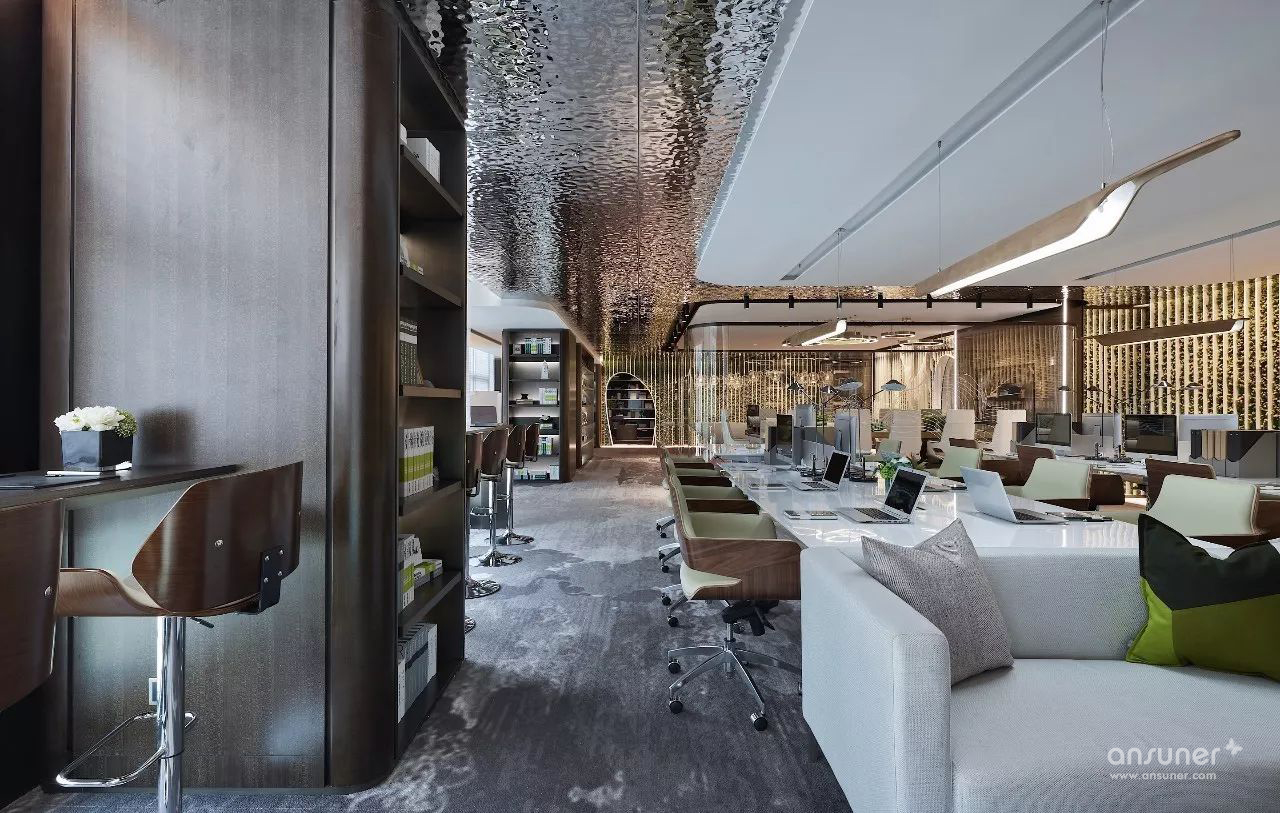 南京证大喜玛拉雅中心的建筑设计由MAD建筑事务所操刀,办公样板间则由火狐HUOHU(中国)黄全设计,融入人与自然共生的设计哲学,重新构筑人与自然的和谐关系,在满足现代生活各种需求的同时,营造融合而富有生机的空间,实现人与自然在精神上的契合。