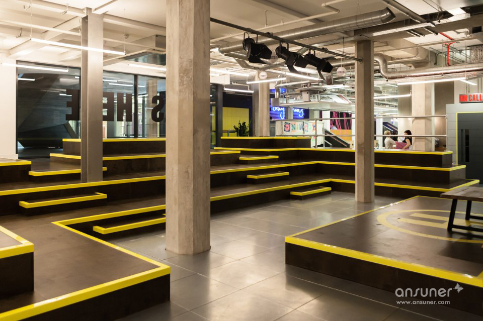 ▼300人座的大礼堂,以染色夹板制作的阶梯式座位并配以专业的舞台灯光,可以直接从Huckletree和Alphabeta中庭进入,这里经常会为其会员和公众举办相关活动;