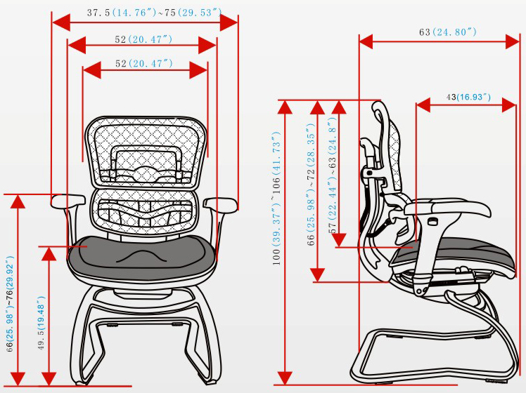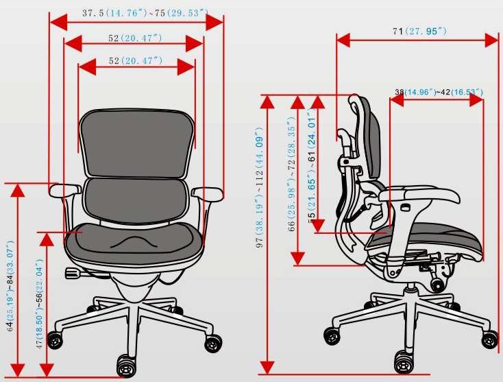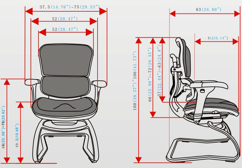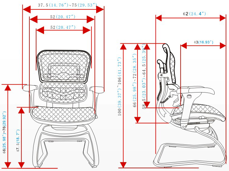 4、扶手前后、角度、高度可调节;